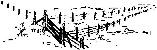 As the pedestrian crossed the creek at the Burnt Ranch, Joe Conley, leading a horse by a riata which was looped as it had fallen about the animal's neck, came through the big corral gate across the road from the house. At the barn Joe disappeared through the small door of the saddle room, the coil of the riata still in his hand, thus compelling his mount to await his return.