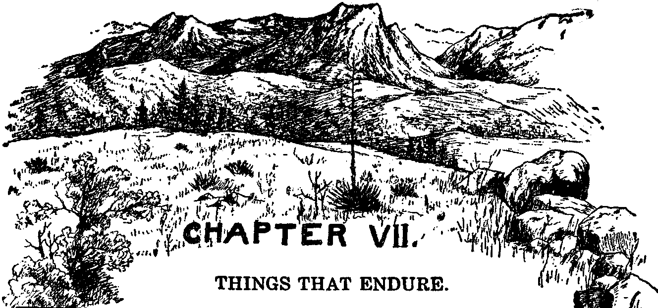 For some time the man stood there, a lonely figure against the sky, peculiarly out of place in his careful garb of the cities. The schooled indifference of his face was broken. His self-depreciation and mockery were forgotten. His dark eyes glowed with the fire of excited anticipation—with hope and determined purpose. Then, with a quick movement, as though some ghost of the past had touched him on the shoulder, he looked back on the way he had come. And the light in his eyes went out in the gloom of painful memories. His countenance, unguarded because of his day of loneliness, grew dark with sadness and shame. It was as though he looked beyond the town he had left that morning, with its litter and refuse of yesterday's pleasure, to a life and a world of tawdry shams, wherein men give themselves to win by means fair or foul the tinsel baubles that are offered in the world's petty games of chance.