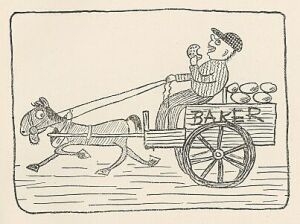 I'd like to be a baker, and come when morning breaks, Calling out, "Beeay-ko!" (that's the sound he makes)-- Riding in a rattle-cart that jogs and jolts and shakes, Selling all the sweetest things a baker ever bakes; Currant-buns and brandy-snaps, pastry all in flakes; But I wouldn't be a baker if . . . I couldn't eat the cakes. Would you?