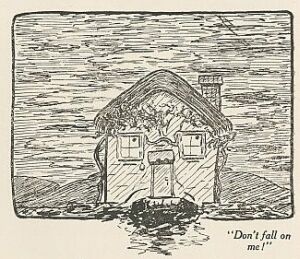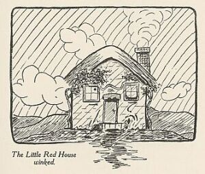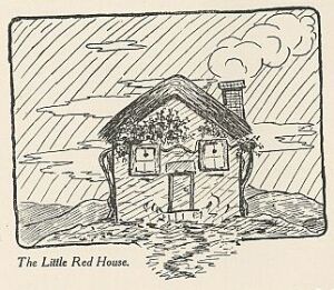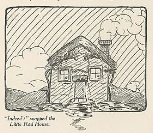 Sym and Emily Ann were fond of the Little Red House, and you may be sure the Little Red House was fond of them--he was their home. The only thing that bothered him was that they were sometimes away from home, and then he was miserable, like all empty houses. Now, Sym was a tinker--a travelling tinker. He would do a little gardening and farming at home for a while, and then go off about the country for a few days, mending people's pots and pans and kettles. Usually Sym left Emily Ann at home to keep the Little Red House company, but now and then Emily Ann went with Sym for a trip, and then the Little Red House was very sad indeed. One morning, just as the sun was peeping over the edge of the world, the big Blue-gum woke up and stretched his limbs and waited for the Little Red House to say "Good morning." The Blue-gum always waited for the greeting because he was the older, and he liked to have proper respect shown to him by young folk, but the Little Red House didn't say a word. The big Blue-gum waited and waited; but the Little Red House wouldn't speak. After a while the Blue-gum said rather crossly, "You seem to be out of sorts this morning." But the Little Red House wouldn't say a word. "You certainly do seem as if you had a pain somewhere," said the Blue-gum. "And you look funny. You ought to see yourself!" "Indeed?" snapped the Little Red House, raising his eyebrows just as a puff of wind went by. "I can't always be playing the fool, like some people." "I've lived on this mountain, tree and sapling, for over a hundred years," replied the big Blue-gum very severely, "and never before have I been treated with such disrespect. When trees become houses they seem to lose their manners."