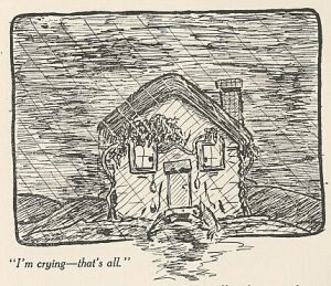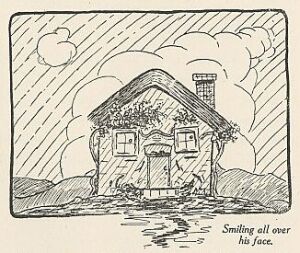 "Cheer up!" said the big Blue-gum. But the Little Red House couldn't say a word. Presently the big Blue-gum groaned loudly. "Oo! Ah! Ah! Golly!" groaned the Blue-gum in a strange voice. "I beg your pardon? said the Little Red House. "Oh, I have a nasty sharp pain in my side," said the Blue-gum. "I do hope and trust it isn't white-ants. It would be simply horrible, if it were. Fancy getting white-ants at my time of life! Here I have lived on this mountain, tree and sapling, for over a hundred years; and to think those nasty, white, flabby little things should get me at last is horrible--horrible!" "I am sorry," said the Little Red House. "I'm afraid I've been very selfish, too. I was forgetting that everyone has troubles of his own; but I hope it isn't so bad as you fear." "It is bad enough," groaned the Blue-gum. "Ow! There it is again. I'm afraid it IS white-ants. I can feel the wretched little things nipping." But the Little Red House hardly heard him. He was thinking again of his own troubles. So they stood all through that day, saying very little to each other. Rabbits came and played about the Little Red House, and lizards ran over his door-step, and once a big wallaby went flopping right past the front gate. But the Little Red House paid no attention. He was too busy thinking of his loneliness. Birds came and perched in the branches of the big Blue-gum, and chattered and sang to him, trying to tell him the news of other trees on distant mountains. But the big Blue-gum took no notice. He was too busy thinking about white-ants. So the sun sank low behind the Little House, and the shadow of the tall Blue-gum began to creep down the mountain and get longer and longer. Just as it was growing dark, the big Blue-gum said Suddenly, "It certainly looks more like rain than ever. The heavy clouds have been gathering all day, and we shall get it properly to-night." But the rain did not come that night, nor the next day, nor for two days and nights. And all this while the Little Red House and the Big Blue-gum remained silent and miserable--one through loneliness, the other through white-ants. But on the evening of the third day the big Blue-gum said, "The rain will come to-night for certain. I know by the feel of the air." "Let it come!" said the Little Red House. "I don't care. I couldn't be more miserable than I am." Just as he said that, one great rain-drop fell right on the middle of his roof--Plop! "It's coming already," cried the Blue-gum, "and it's going to pour." Then three more big drops fell--Plop! Plop! Plop! "I have never in my life seen such big rain-drops," said the Blue-gum. "I've lived on this mountain, tree and sapling, for--" But--Crash! came rain before he could finish; and in two seconds everything was sopping wet. The noise of it was deafening, "Why, it's a cloud-burst!" shouted the Blue-gum. "Half of my leaves have been stripped off already." Then he peered through the rain and the dark to see how the Little Red House was taking it. "Why, what's the matter with your face?" he cried. "You look awful." "I'm crying!" sobbed the Little Red House. "That's all--just crying. "Can't you see the tears?"