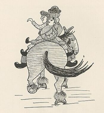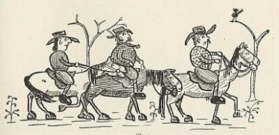 Did you see them pass to-day, Billy, Kate and Robin, All astride upon the back of old grey Dobbin? Jigging, jogging off to school, down the dusty track-- What must Dobbin think of it--three upon his back? Robin at the bridle-rein, in the middle Kate, Billy holding on behind, his legs out straight. Now they're coming back from school, jig, jog, jig. See them at the corner where the gums grow big; Dobbin flicking off the flies and blinking at the sun-- Having three upon his back he thinks is splendid fun: Robin at the bridle-rein, in the middle Kate, Little Billy up behind, his legs out straight.