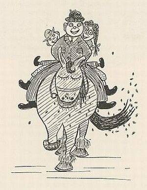 Flippity-flop! Flippity-flop! Here comes the butcher to bring us a chop Cantering, cantering down the wide street On his little bay mare with the funny white feet; Cantering, cantering out to the farm, Stripes on his apron and basket on arm. Run to the window and tell him to stop-- Flippity-flop! Flippity-flop!