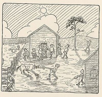 Cackle and lay, cackle and lay! How many eggs did you get to-day? None in the manger, and none in the shed, None in the box where the chickens are fed, None in the tussocks and none in the tub, And only a little one out in the scrub. Oh, I say! Dumplings to-day. I fear that the hens must be laying away.