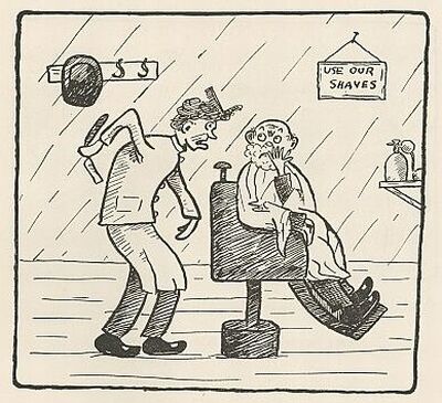 I'd like to be a barber, and learn to shave and clip, Calling out, "Next please!" and pocketing my tip. All day I'd hear my scissors going, "Snip, Snip, Snip;" I'd lather people's faces, and their noses I would grip While I shaved most carefully along the upper lip. But I wouldn't be a barber if . . . The razor was to slip. Would you?
