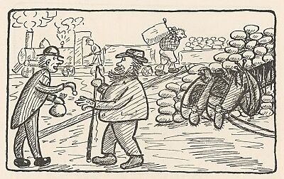 I'd like to be a postman, and walk along the street, Calling out, "Good Morning, Sir," to gentlemen I meet, Ringing every door-bell all along my beat, In my cap and uniform so very nice and neat. Perhaps I'd have a parasol in case of rain or heat; But I wouldn't be a postman if . . . The walking hurt my feet. Would you?