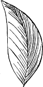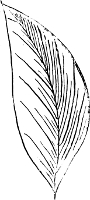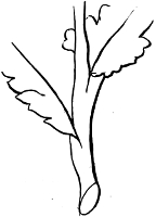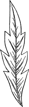 A leaf or stalk should never be worked across, but always (and the same rule, of course, applies to flower-petals) in the same direction as the fibres in a natural leaf. With such leaves as brambles, and others that will suggest themselves, one side should be a darker shade than the other. Figure 5 shows the natural way of working a leaf.