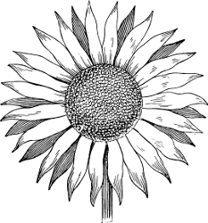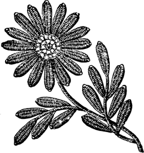 Floral designs suit this style of work best; and somewhat conventionalized models are most suitable—flowers that can be expressed by the fewest lines in form and the fewest shades in color. Daisy-shaped flowers are particularly suitable; and the well known sunflower, not too much conventionalized, but with the tendency of its long petals to droop a little just indicated here and there, is represented in Figure 7.