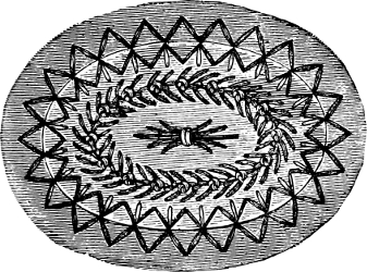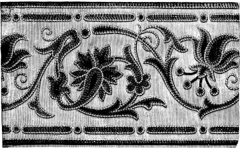 An important point in embroidery is to know what may be to advantage left undone; and as crewel-work is entirely free from all artificial raising, it is merely suggestive of general form.