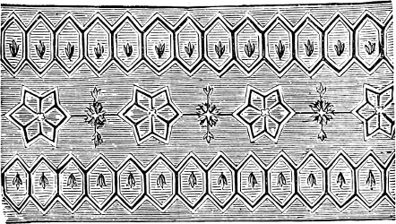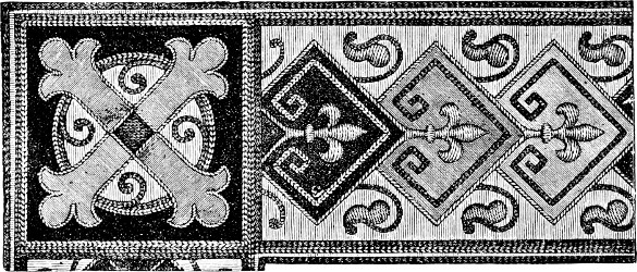 It may be urged that every one is not sufficiently gifted to do this, and particularly to draw the designs; but this part is by no means the difficult matter that the beginner is apt to imagine it, for in art needlework all superfluity of detail is scrupulously avoided. Various plates and illustrations may be found that will serve as guides to the uninitiated; and ancient patterns can often be adapted to present needs.