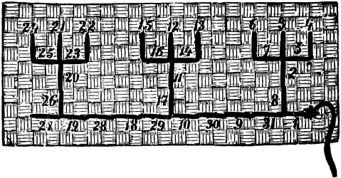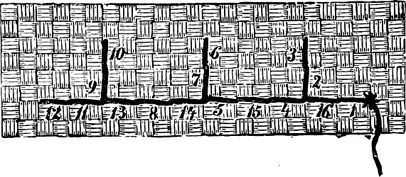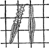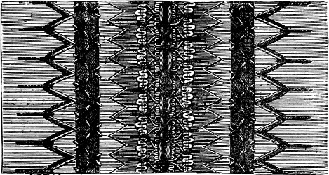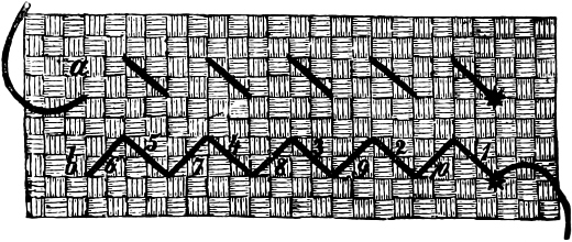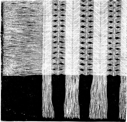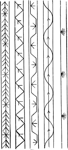 resembles the wrong side of long back-stitching more than anything else; and is illustrated by Figures 1 and 2.