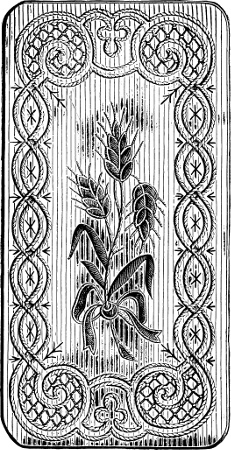 may be done in the same way, only that there[13] is more of it; and being nearer the eye, the design should be more close and elaborate. The patterns on rich papers will be found suggestive studies; and it may be remembered that the material for groundwork can be adapted to the purse of the embroiderer and the other belongings of the apartment, from velveteen at a dollar a yard to crash-towelling at ten cents.