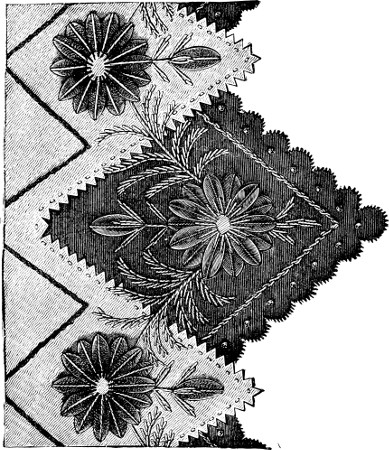 It will be seen that the stitch is very simple, and that much is left to the discretion of the worker. Care must be taken that the worsted is not pulled too tight, nor left too loose, as the effect must be smooth and even—with the curves clearly defined, and the points sharp and complete.