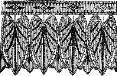 In working portières, it is necessary to remember that they should be well covered with embroidery, because the light falls on all their[14] parts; while an embroidered border suffices for curtains, as the edges only are likely to catch the sun’s rays.