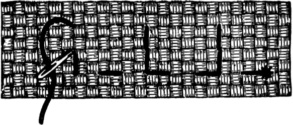 This style of work was much in vogue during the latter part of the eighteenth century, and has recently been revived, and the modus operandi dignified by the name of the South Kensington stitch. But people with great-grandmothers produce pieces of work done in a similar manner; and the stitch is the same as the long stitch in silk embroidery, only longer and more careless.