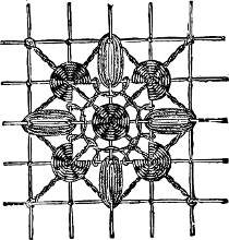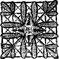 The woodbine honeysuckle can be reproduced in crewels in very natural colors, and we have seen some that almost diffused a June[15] odor about them. They were worked on very fine, soft crash, and intended for a tidy; but a beautiful fire-screen could be made of them on a blue or plum-colored ground.