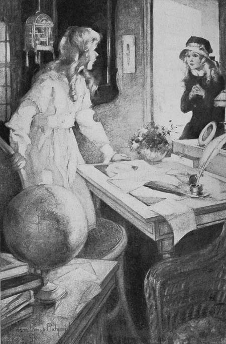 “Mother says money isn’t the only thing in the [12]world,” said Nora, soberly. “She wants me to have a good education before I do anything else. You see my father had a wonderful education. He went to Oxford University in England, and graduated first in his class. Mother had a good education, too. She speaks French, and she used to play the piano beautifully, but it’s so long since we’ve been able to afford to have one she’s afraid she’s forgotten most of her music. My grandfather was a lawyer, and when Mother was a little girl they were very well off, but when Grandpa died there wasn’t much money left, and Mother had to be companion to a cross old lady till she met Father and they got married. Father always thought he was going to be very rich, but he wasn’t strong, and the managers wouldn’t put on his plays, and then he was very ill, and died, when I was a baby, and Mother has had to work hard ever since.”