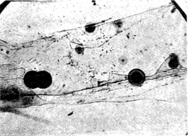 Fig. 3.—Haloes in cleavage flake of Biotite. ×85.