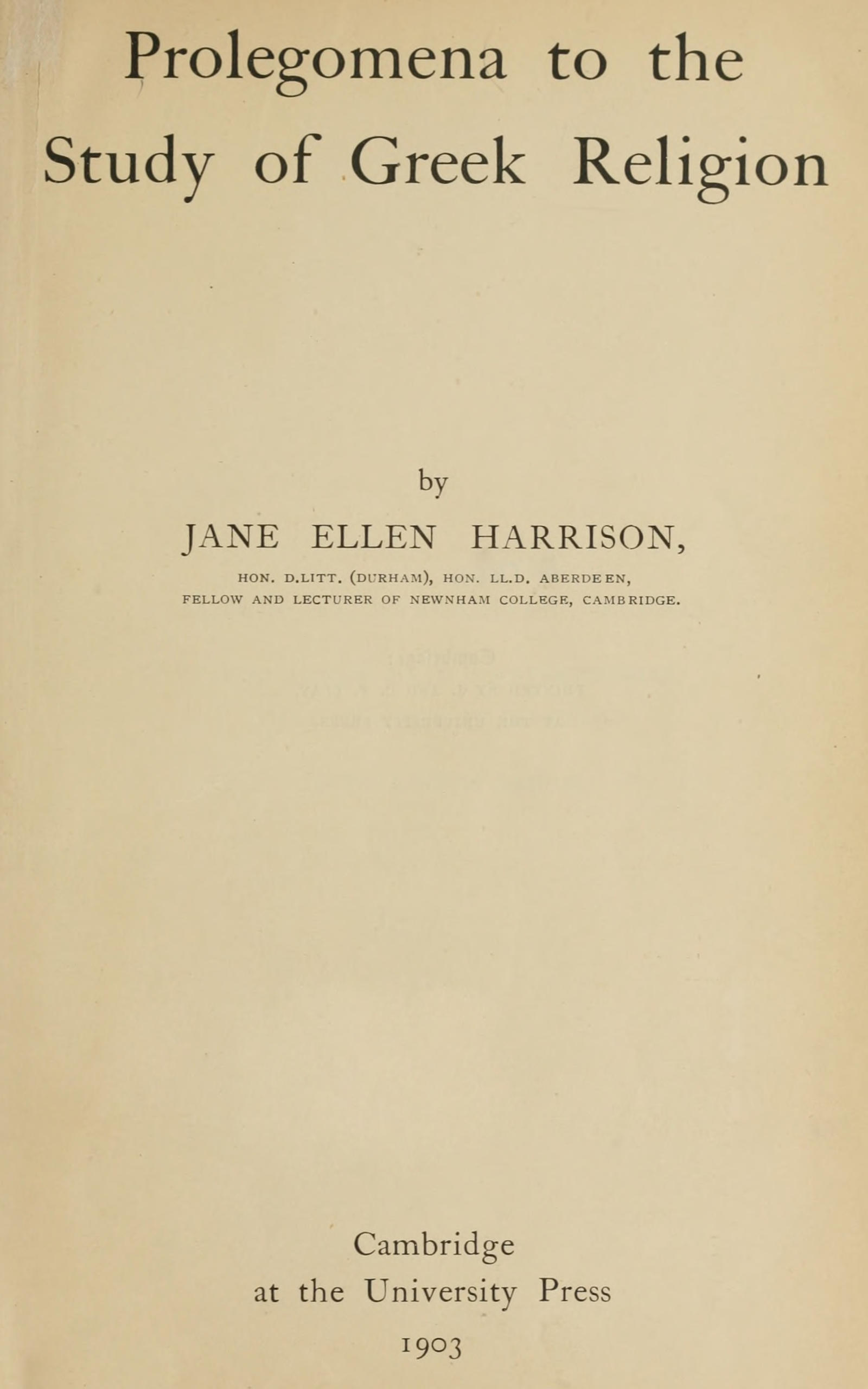 I would guard against misapprehension. Literature as a starting-point for investigation, and especially the poems of Homer, I am compelled to disallow; yet literature is really my goal. I have tried to understand primitive rites, not from love of their archaism, nor yet wholly from a single-minded devotion to science, but with the definite hope that I might come to a better understanding of some forms of Greek poetry. Religious convention compelled the tragic poets to draw their plots from traditional mythology, from stories whose religious content and motive were already in Homer’s days obsolete. A knowledge of, a certain sympathy with, the milieu of this primitive material is one step to the realization of its final form in tragedy. It is then in the temple of literature, if but as a hewer of wood and drawer of water, that I still hope to serve.