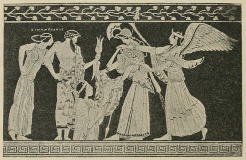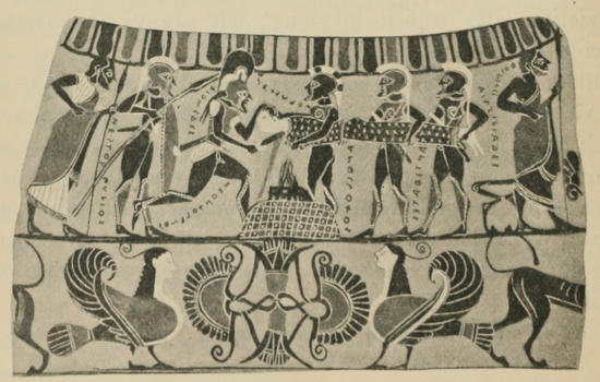 [1622] Reproduced by kind permission of Dr E. von Stern from the Mémoires de la Société Impériale d’histoire et des antiquités, vol. XVIII. pl. I. The vase was found at Kertsch.
