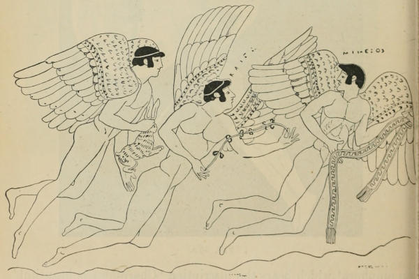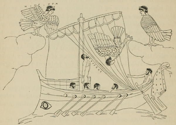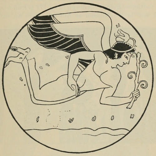 [1574] Cat. E 440. Mon. d. Inst. I. Pl. VIII. The design in fig. 38, Odysseus passing the Sirens, is from the obverse of this vase. The three Sirens probably suggested the triple Erotes.