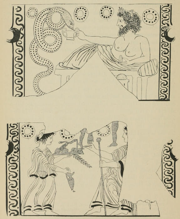 [1557] This fact, that eggs were offered to the dead, has been clearly established by Dr Martin Nilsson in his tract Das Ei im Totenkultus der Griechen. The ‘Sonderabdruck’ he has kindly sent me appeared in the Frân Filologiska Föreningen i Lund Språkliga uppsatser II. (Lund, 1902).