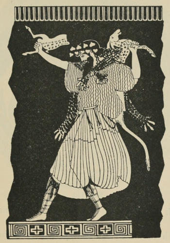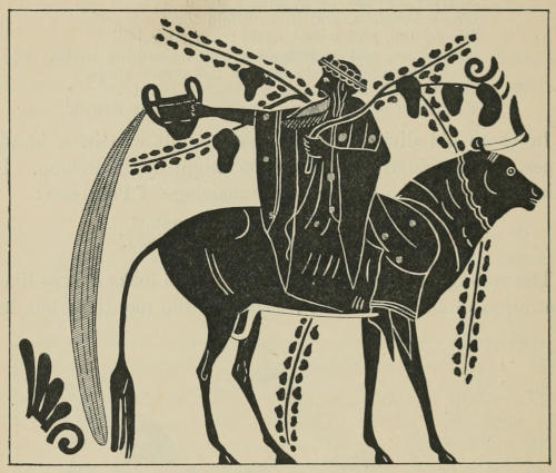 | Mystical character of the religion of Dionysos. Dionysos an immigrant Thracian. The legend of Lycurgus. Historical testimony. In Euripides Dionysos an oriental. Explanation of apparent discrepancy. The Satyrs. Analogy with the Centaurs. The Satyrs represent an indigenous people who became worshippers of Dionysos. Cheiron the good Centaur. The Maenads not merely mythological. The Thyiades of historical times. The Maenads, Thyiades, Bacchants, women possessed by Dionysos. They are the nurses of the god and worship him as Liknites. Dionysos son of Semele. Semele the Earth-Mother. Cult of thunder-smitten places. Dionysos son of Zeus. Zeus adopts Dionysos as god of the grape. Examination of the titles Bromios, Braites, Sabazios. All three are titles of a god of a cereal intoxicant. The cereal intoxicant preceded in the North the intoxicant made from the grape. Tragedy the song of the cereal drink. Dionysos emerges from obscurity as god of the grape. Dionysos the tree and vegetation god. Evidence of art. The ‘Principle of Moisture.’ Dionysos the Bull-god. Animal incarnations. The ‘return to nature.’ Dithyrambos and the Dithyramb. Dithyrambos the Mystery-Babe. Plutarch on the Dithyramb. Possible association with the Bee-Maidens, the Thriae. Moderation of the Greek in the use of wine. Sacramentalism of eating and drinking. The ecstasy of asceticism, | pp. 364-454.[xxi] | |
