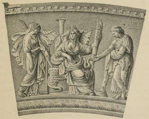 | The passage from ghost to god more plainly seen in the cult of heroes than in that of heroines. Instances from heroine-worship. Helen and Hebe. The hero as snake. Origin of the bearded snake. Heroes called by adjectival cultus-titles rather than personal names. The ‘nameless’ gods of the Pelasgians. The name ‘hero’ adjectival. Origin of supposed ‘euphemistic’ titles. The ‘Blameless’ Aigisthos. The ‘Blameless’ Salmoneus. Antagonism between the gods proper of the Olympian system and local heroes. Beneficence of the heroes. Asklepios and the heroes of healing. Asklepios originally a hero-snake. Evidence of votive reliefs. Amynos and Dexion. The ‘Hero-Feasts.’ Cult of Hippolytus. Zeus Philios. Hero-Feasts lead to Theoxenia. Type of the Hero-Feast taken over by Dionysos. Evidence from reliefs, | pp. 323-363. | |