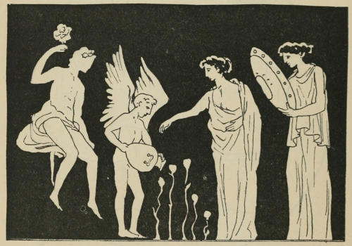 Finally in Chapter XII. it is shown how, as a concomitant to their Eschatology, the Orphics, unlike Homer, evolved a Cosmogony, and with this Cosmogony was ultimately bound up a peculiar and philosophic theology. In the fifth century B.C. the puppet-show of the Olympians was well-nigh played out, but the two gods of the Orphics remained potent. In ritual they worshipped Dionysos, but their theoretical theology recognized [xii]Eros as source of all things. The Eros of the Orphics was a mystery-being, a daimon rather than a theos, a potency wholly alien to the clear-cut humanities of Olympus.
