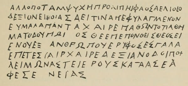 [1597] Iambl. de Myst. § 247 χαρακτὴρ παλαιότροπος ... ἀρχαιοτρόπου δὲ καὶ παλαιοῦ πίνου διαφερόντως ὥσπερ τινὸς ἀχειραπτήτου νοῦ προσπνέοντα.