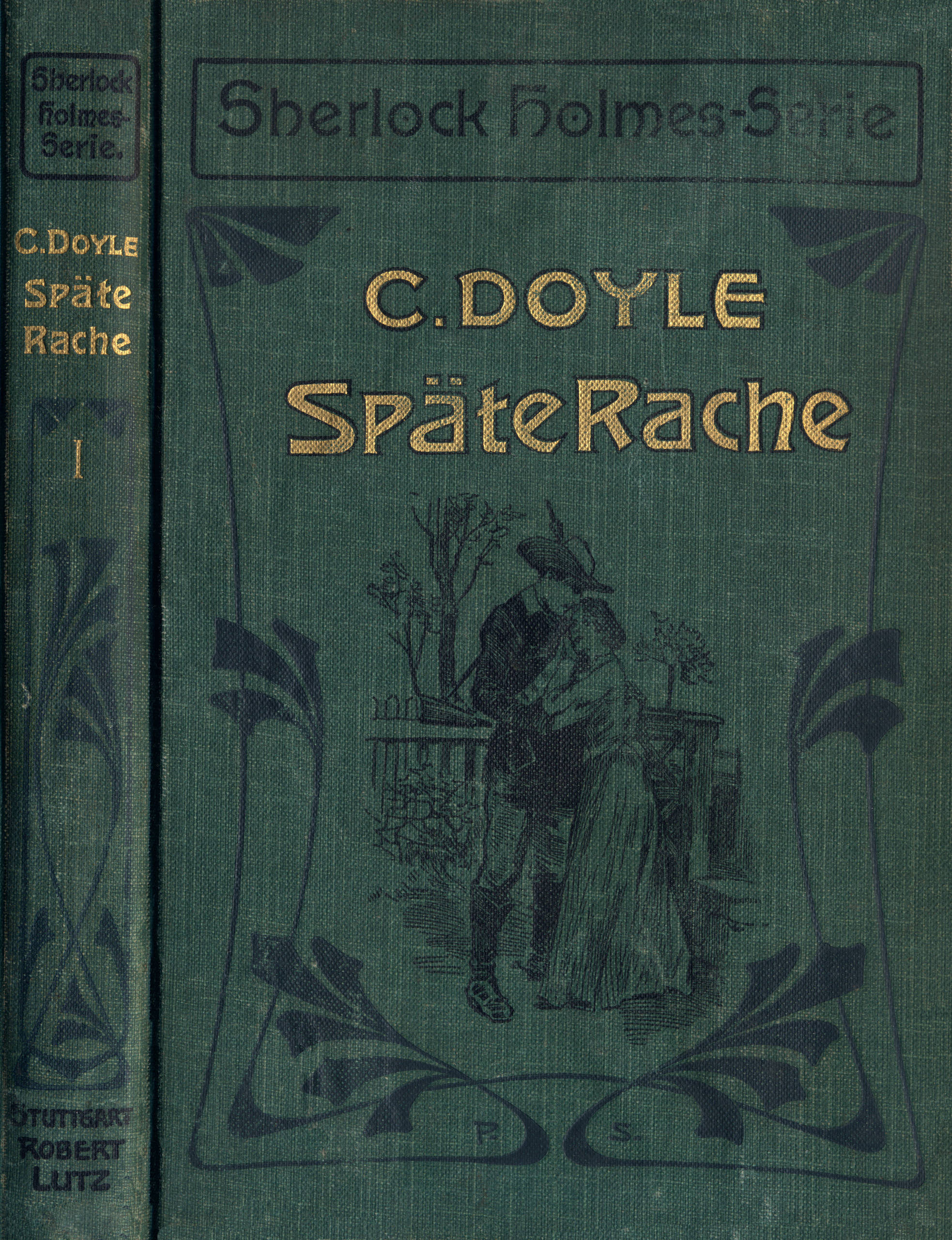 „Nun aber kam die große Frage nach dem Beweggrund. Ein Raub konnte nicht beabsichtigt sein, denn weder des Toten Börse noch seine Uhr waren entwendet worden. Handelte es sich vielleicht um politische Zwecke oder war eine Frau im Spiele? — Ich neigte mich von Anfang an letzterer Meinung zu. Der politische Fanatiker bringt seine Opfer so rasch als möglich um und ergreift die Flucht. Dieser Mord war aber im Gegenteil mit allem Vorbedacht ausgeführt worden und man konnte im ganzen Zimmer die Spur des Thäters verfolgen. Allem Anschein nach handelte es sich um einen Akt der Privatrache. Die Inschrift an der Wand bestärkte mich nur in dieser Ansicht, und als zuletzt der Trauring zum Vorschein kam, hielt ich die Frage für entschieden. Der Mörder hatte ihn vermutlich benützt, um sein Opfer an ein früheres Verhältnis zu irgend einem Mädchen zu erinnern. Um hierüber Aufschluß zu erhalten, fragte ich Gregson, ob er in seinem Telegramm [S. 229]um Nachricht über Drebbers Vorgeschichte gebeten habe, das hatte er jedoch unterlassen.