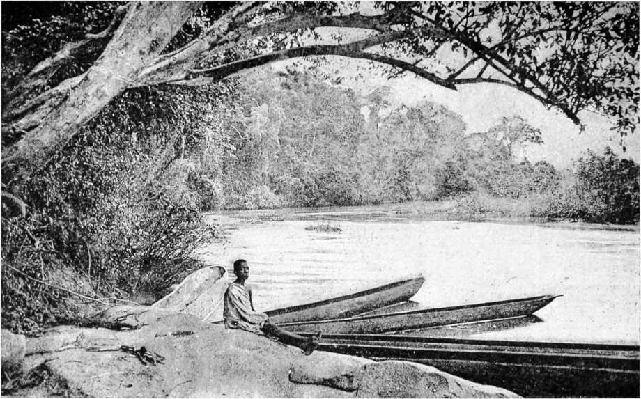 En route, un seul incident. Au moment où le Diamant passe devant un petit village de la rive gauche appartenant au Sanwi (pays de Krinjabo), la population massée au bord de l’eau jette un cri, un nom, celui du pauvre porteur que nous avons perdu à Kong et enseveli la nuit, sur une place :